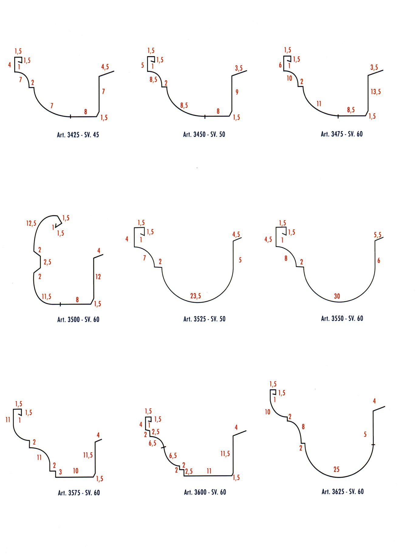 Ricco catalogo con gomiti e prodotti edili realizzati su misura